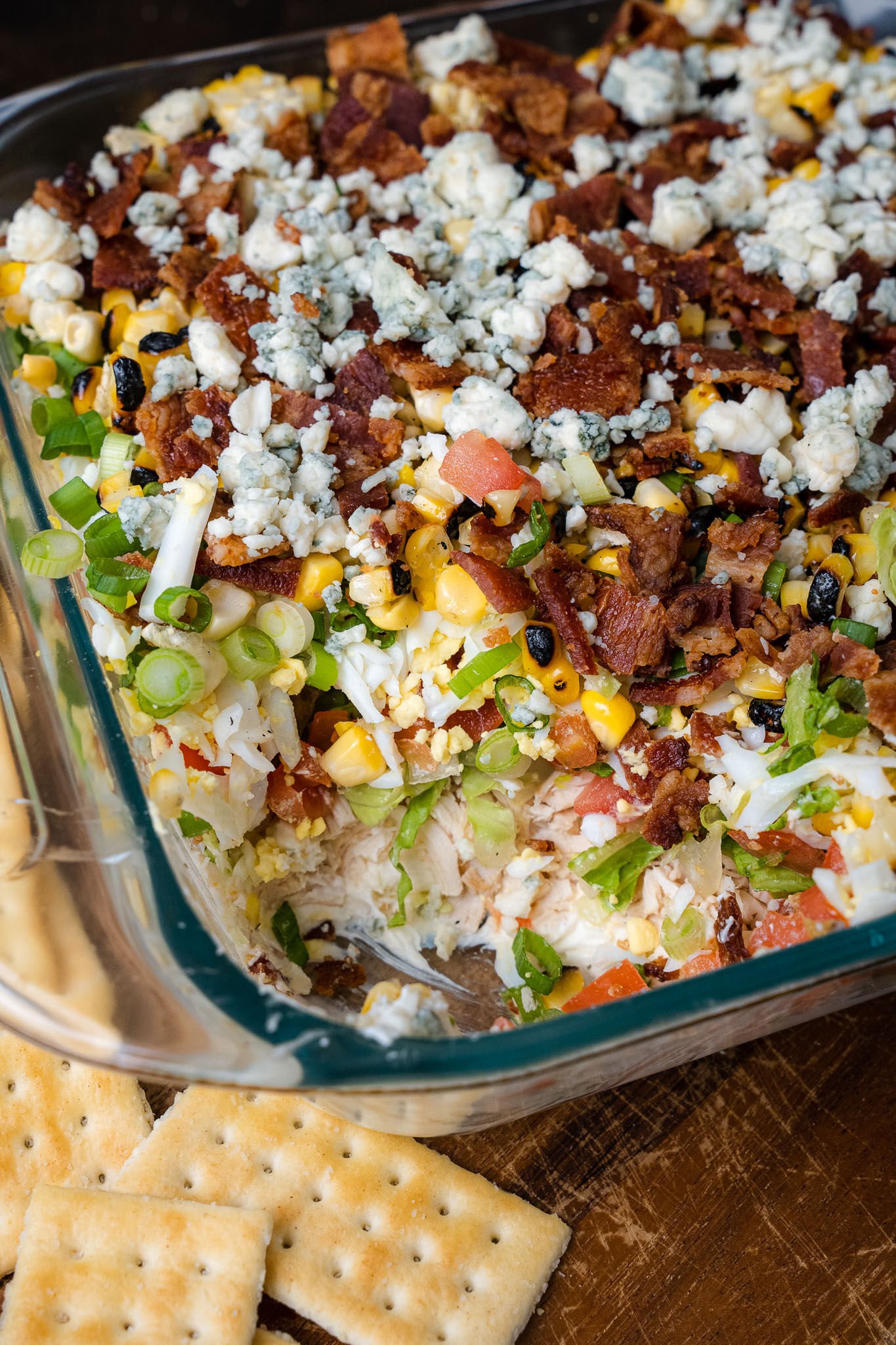 This 7 Layer Cobb Salad Dip ingeniously transforms the classic Cobb salad into a vibrant and incredibly flavorful dip, perfect for sharing. All the beloved components—tender chicken, crisp lettuce, juicy tomatoes, savory bacon, and tangy blue cheese—are beautifully layered over a creamy ranch base, creating an irresistible appetizer that’s as stunning to look at as it is delicious to scoop up.