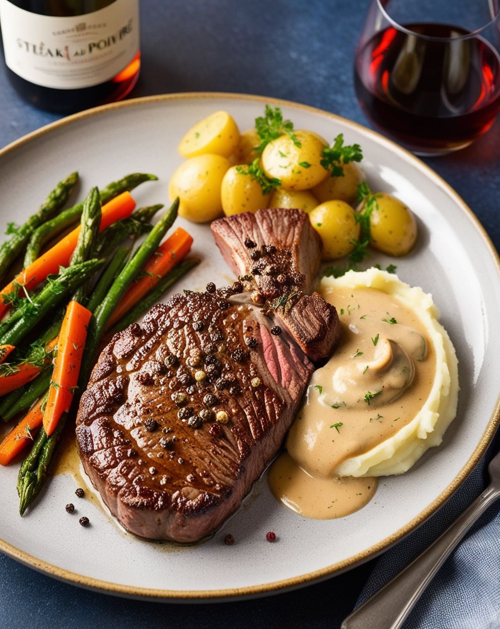 A classic French dish with bold peppery flavor balanced by a creamy brandy sauce. Ingredients: 2 filet mignon steaks
