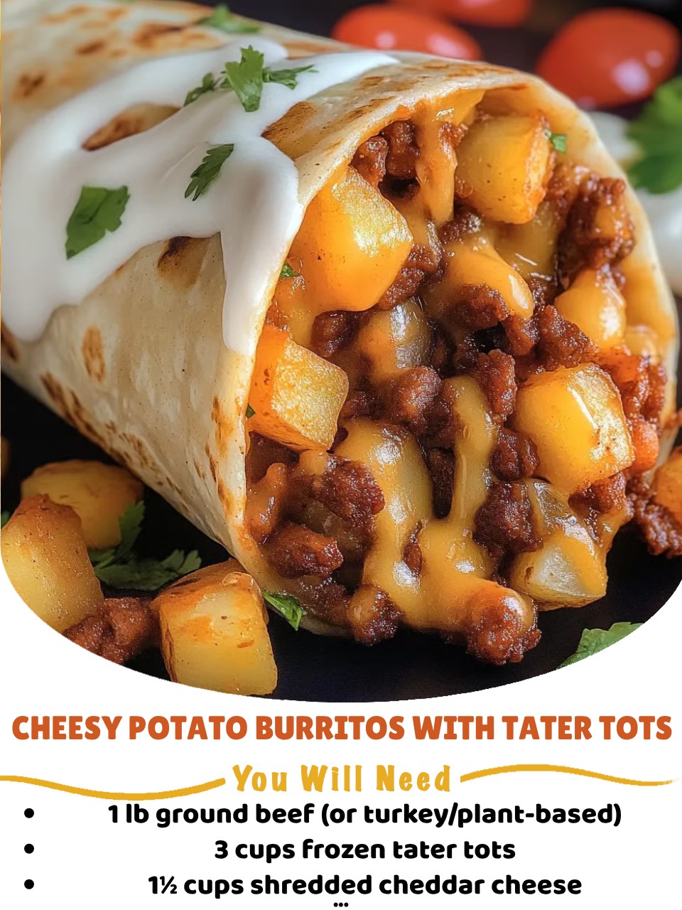Savor all the Tex-Mex goodness in every bite with flour tortillas packed with golden tater tots, seasoned ground beef, cheddar, and Monterey Jack. A generous drizzle of chipotle sauce and a dollop of sour cream bring creamy heat, while melted cheese baked on top takes these burritos over the edge. Serve hot with fresh garnishes … Read more