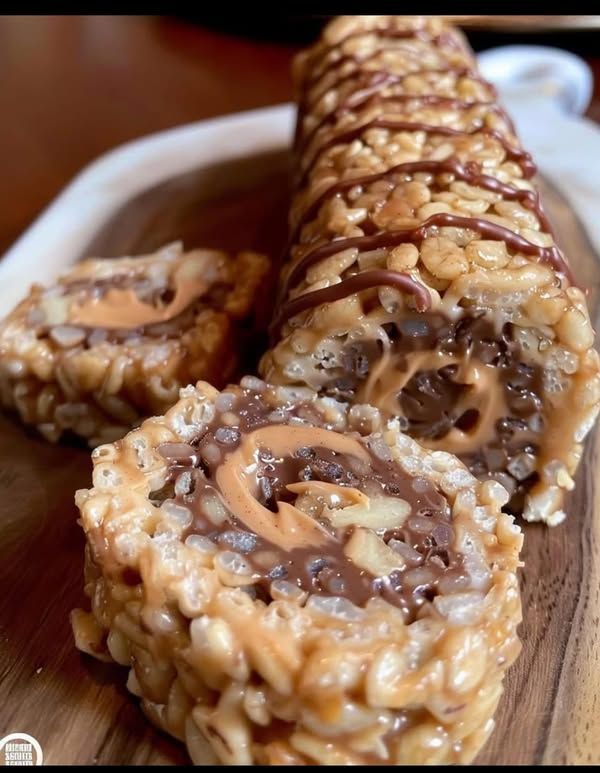Roll the Rice Krispies layer tightly into a log, starting from one short side. Use the wax paper to help guide the roll.