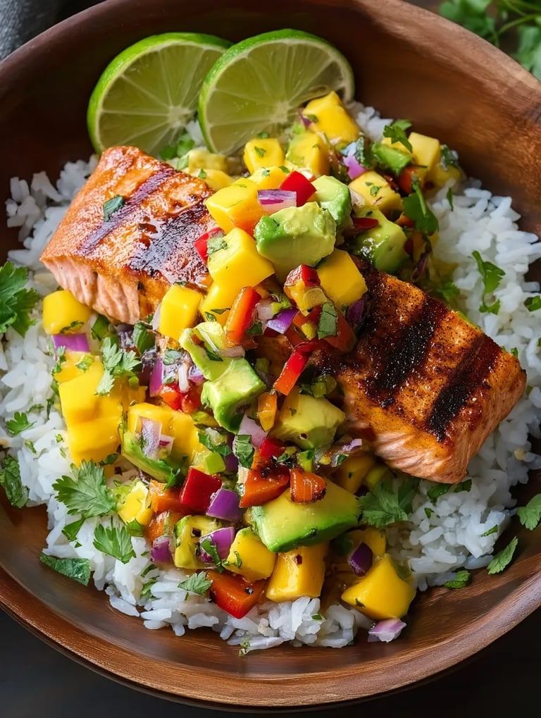 Gently fold together all salsa ingredients just before serving. The lime juice prevents oxidation of the avocado while the coconut water adds subtle sweetness tying the salsa to the rice. Season thoughtfully as the salt enhances the natural sweetness of the mango.