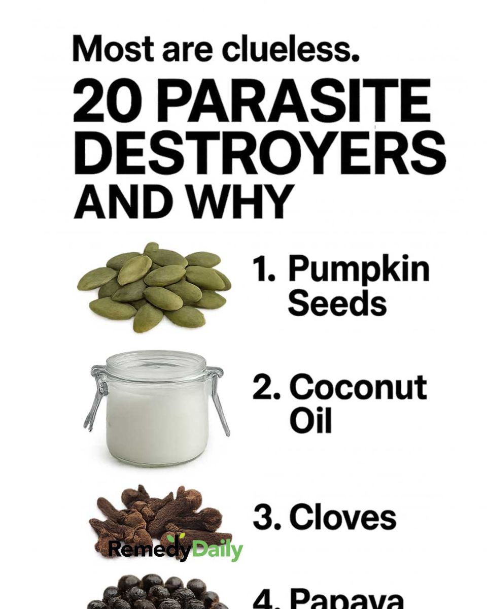 Pumpkin seeds contain cucurbitacin, a compound that paralyzes parasites, making them easier to eliminate from the digestive tract. They are particularly effective against tapeworms and can be consumed raw or roasted for maximum benefit.